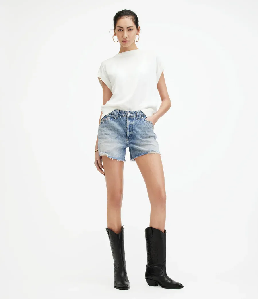 Shorts are all about the detail. Made from an organic cotton blend denim to a slim fitting shape. They're decorated with western style pocket detail, wide belt loops and slight distressed detailing. Pair with some vintage cowboy boots and you're hot weather ready...